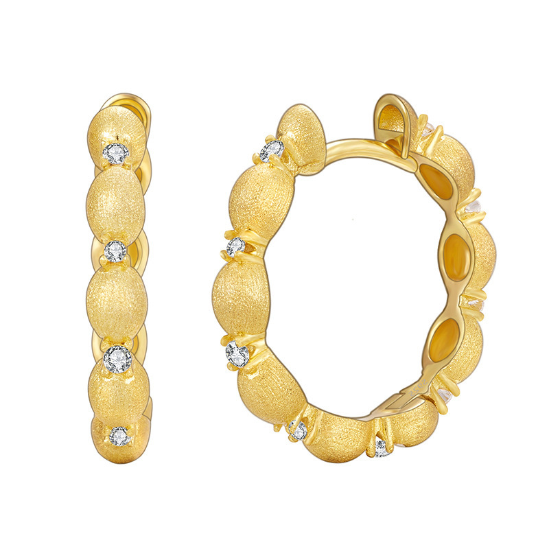 Stock up on these stylish 925 sterling silver brushed hoop earrings, highlighted with sparkling zircon stones and gold plating. A trendy blend of vintage charm and modern luxury, perfect for global jewelry retailers, fashion boutiques, and online shops. Available in bulk at competitive wholesale prices.