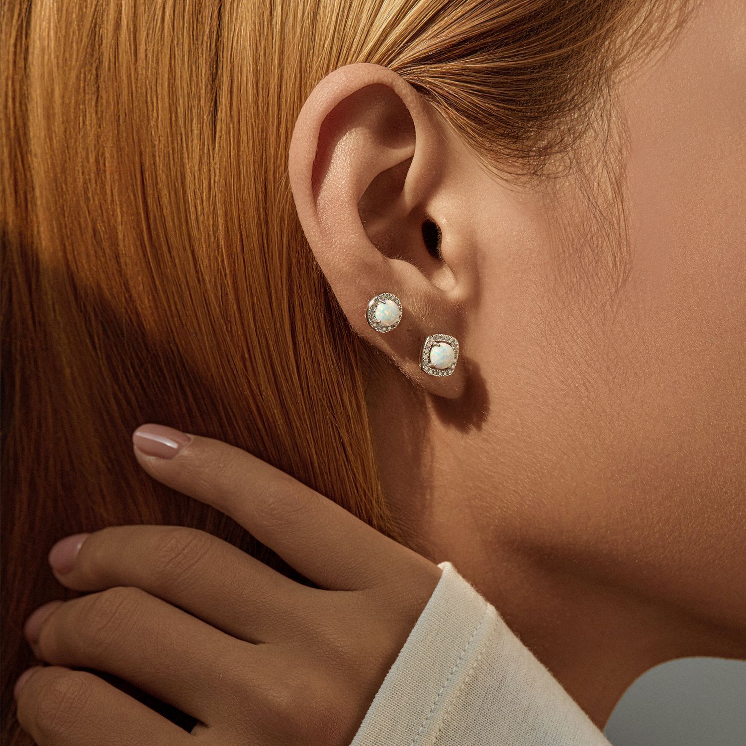 Expand your vintage-inspired collection with our Wholesale 925 Sterling Silver Vintage Cushion Opal Studs. Unlike standard round halo studs, this SKU features a trendy "Cushion Halo" silhouette (a round stone in a soft square frame), which offers a higher perceived value and a unique visual identity. The "Created Opal" center stone provides the desirable play-of-color of natural opal but with the durability required for everyday wear. These studs are the perfect upsell match for our Vintage Cushion Opal Ring, allowing retailers to offer a complete jewelry set.