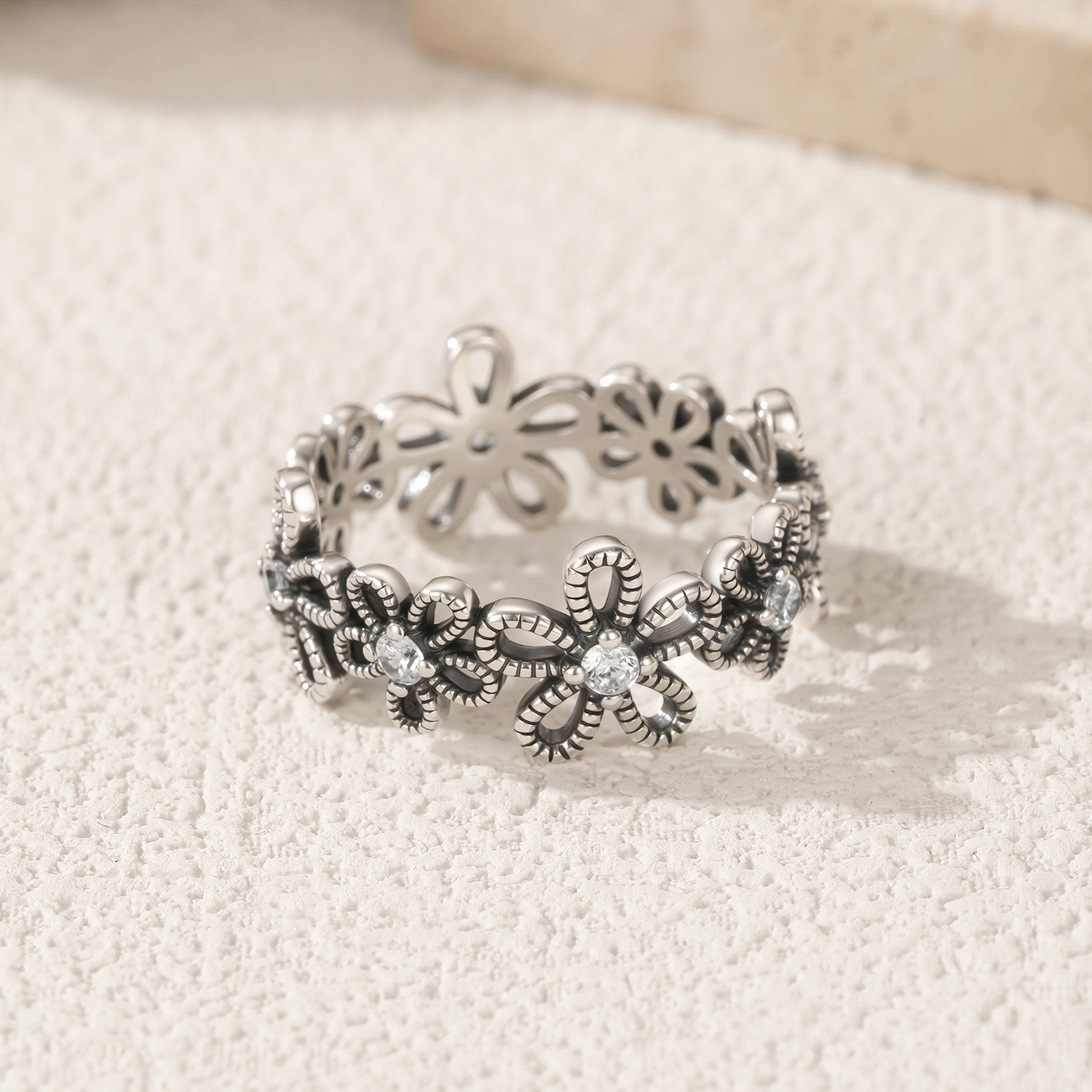 925 Sterling Silver Vintage Flower Band Ring 70100453