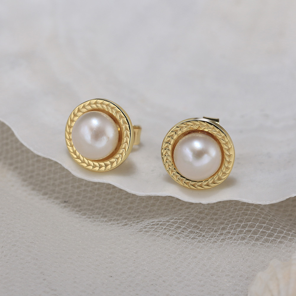 925 Sterling Silver Vintage Fresh Water Pearl Stud Earring 40500020