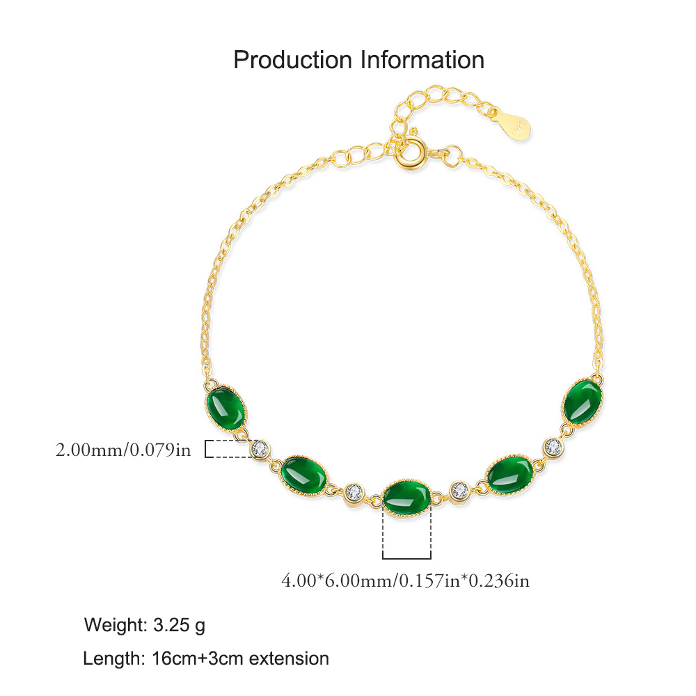 Add a vibrant pop of color with this elegant 925 sterling silver bracelet, crafted with eye-catching oval green stones in a candy-like design. Accented by sparkling cubic zirconia and finished in radiant gold plating, this piece brings a luxurious yet playful vibe. Perfect for layering or wearing solo, it's ideal for both special occasions and daily wear.