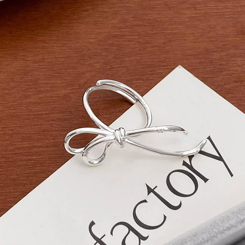 Source a high-fashion, trending design with our 925 Sterling Silver Vintage Ribbon Bow Ring. This style features a popular, sculptural/liquid metal aesthetic in the form of a continuous ribbon bow with long, flowing tails. Crafted from authentic S925 sterling silver and finished with a high polish, this piece offers premium perceived quality and strong appeal in the contemporary market. The adjustable open design minimizes inventory sizing needs and broadens customer reach. This is an ideal item for retailers seeking fast-selling, modern silver jewelry. Available for bulk purchase at competitive wholesale prices.