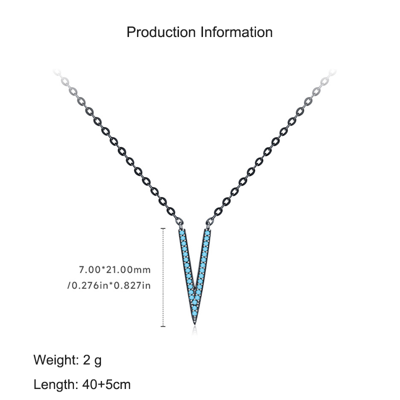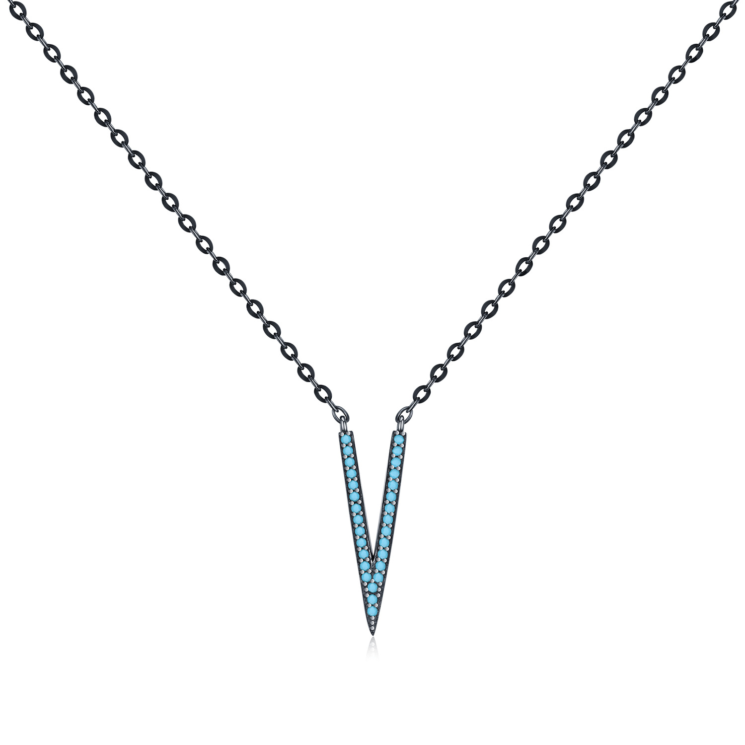 925 Sterling Silver Vintage Turquoise V-shaped Necklace 80200399