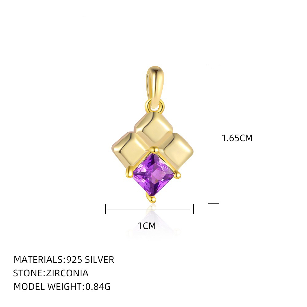 925 Sterling Silver Violet Heart Square Zirconia Pendant 90200100