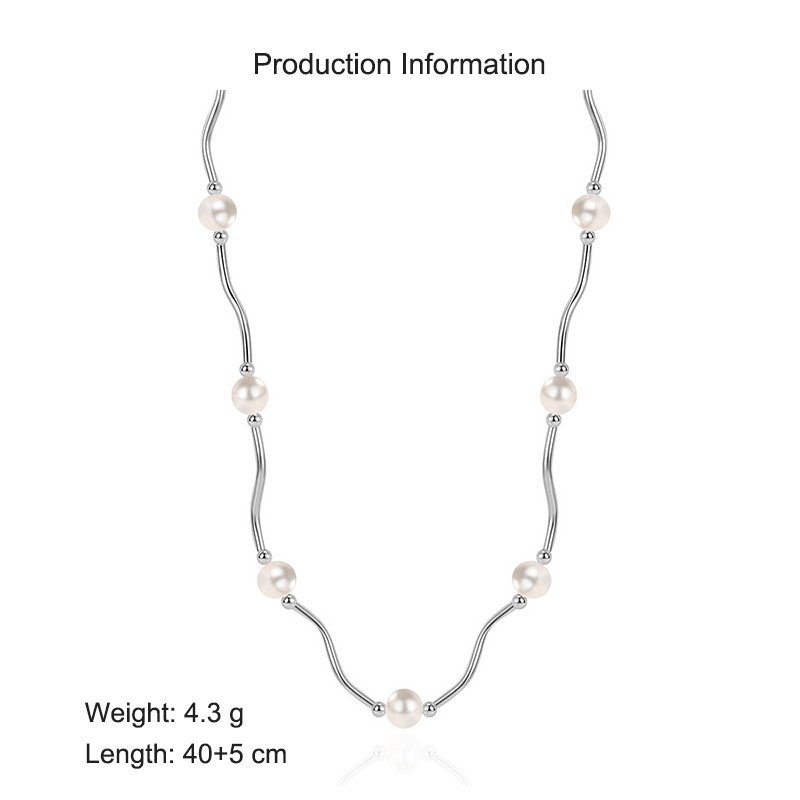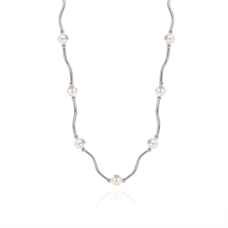 925 Sterling Silver Waved Tues Fresh Water Pearl Necklace 80100074