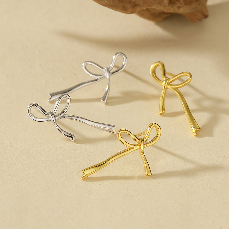 Source a high-demand, on-trend style with our 925 Sterling Silver Wire Bow Stud Earrings. This piece features a popular minimalist/line-art aesthetic with a stylish, open-work bowknot design, appealing to a wide range of customers. Crafted from authentic 925 sterling silver and available in both silver and durable gold-plated finishes, this design offers excellent quality and broad market appeal. This is a reliable, fast-selling item ideal for boutiques and fashion retailers. Available for bulk purchase at competitive wholesale prices.