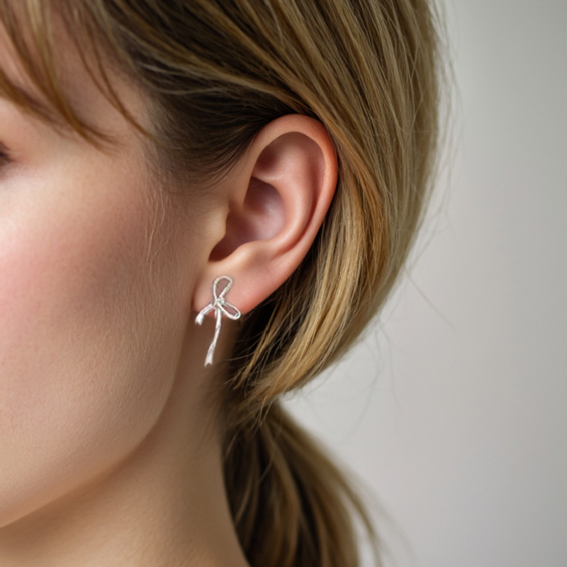 925 Sterling Silver Wire Bow Stud Earring 40400131
