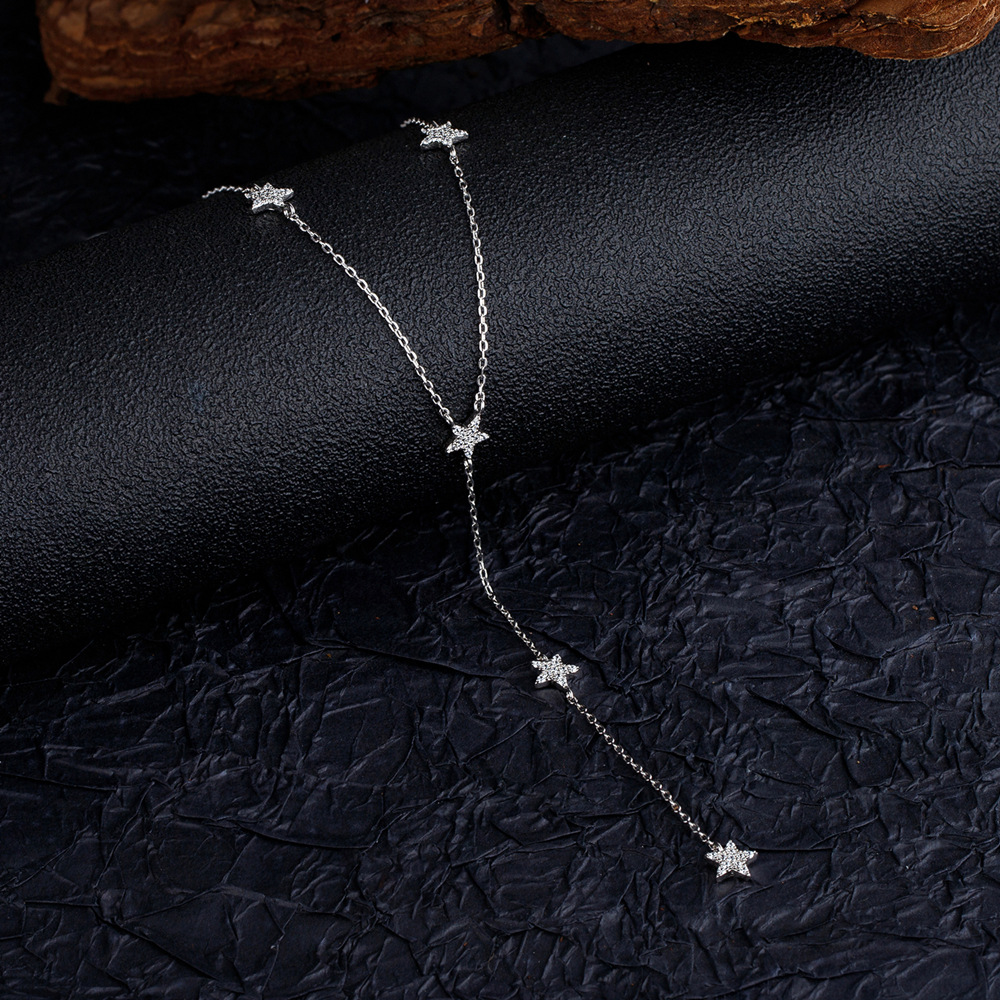 Enhance your wholesale collection with this trendy 925 sterling silver star tassel long necklace. Designed with multiple micro-pavé star charms on a dainty Y-chain, this celestial-inspired piece is highly popular among modern fashion lovers. Its versatile design makes it perfect for layering, gifting, and evening wear. Meeting European and American standards, it combines durability with elegance. Available at competitive wholesale prices, this necklace is a best-seller for boutiques, resellers, and online jewelry stores.