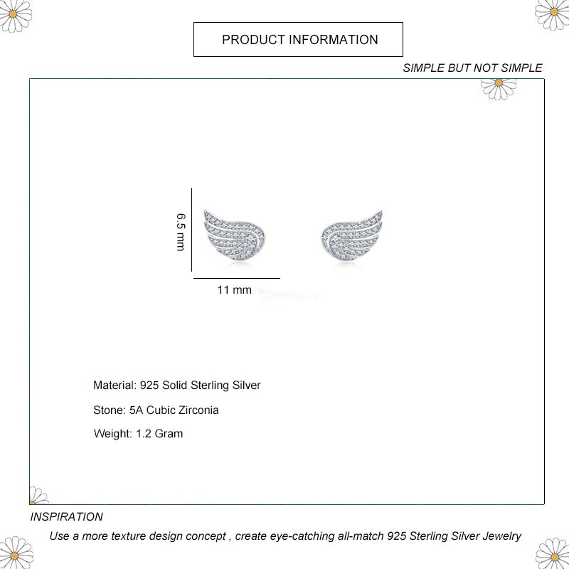 925 Sterling Silver Zirconia Angel Wing Stud Earring 40200103