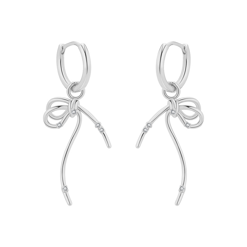 Source a high-demand, fashion-forward item with our 925 Sterling Silver Zirconia Bow Drop Hoop Earrings. This piece features a trendy, open-work bowknot pendant on a secure hinged hoop base. Crafted from authentic S925 sterling silver and accented with cubic zirconia, this design appeals to a wide market segment looking for contemporary, high-quality silver jewelry. The versatile style is perfect for boutiques and online stores. Available for bulk purchase at competitive wholesale prices.