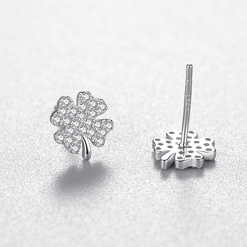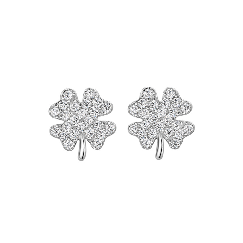 925 Sterling Silver Zirconia Clovers Stud Earrings 40200178