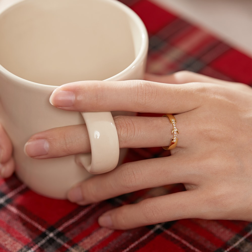 925 Sterling Silver Zirconia Crescent Band Ring 70100196
