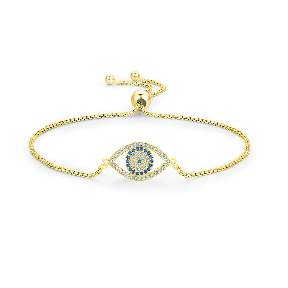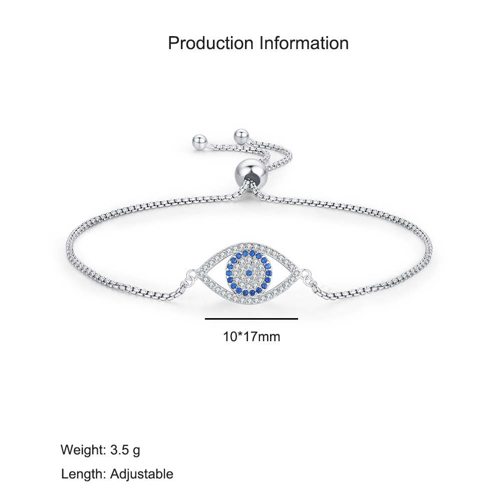 925 Sterling Silver Zirconia Evil Eye Adjustable Bracelet 100100213