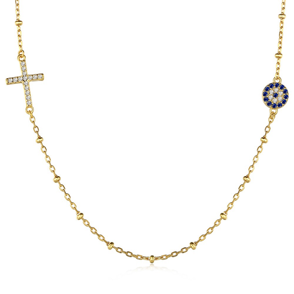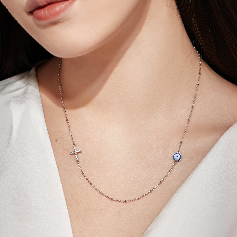 925 Sterling Silver Zirconia Evil Eye Cross Necklace 80100030