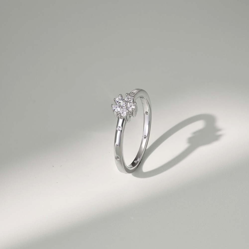 925 Sterling Silver Zirconia Flower Band Ring 70100204