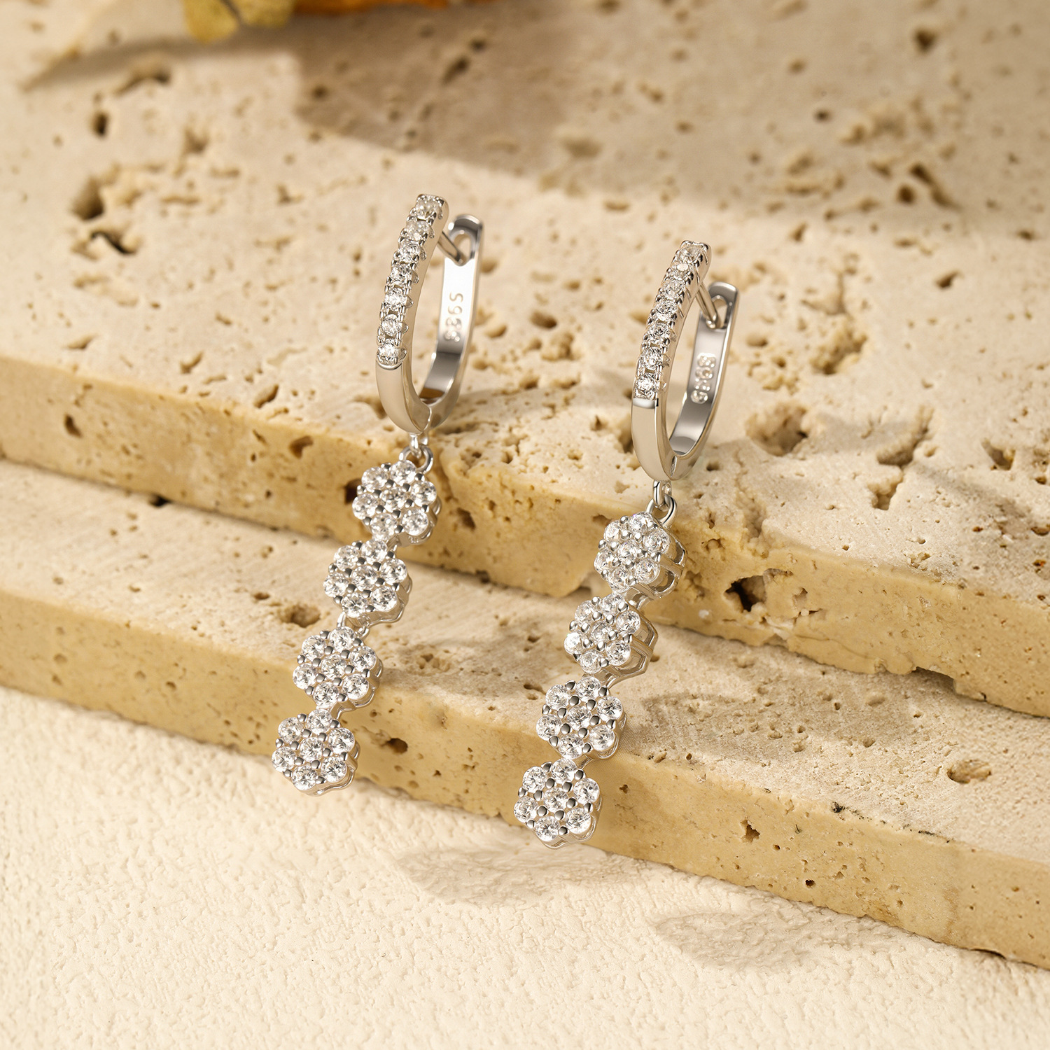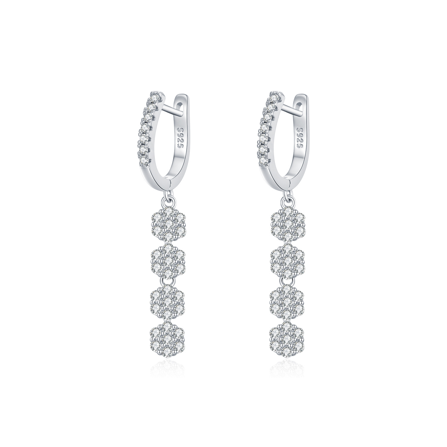 925 Sterling Silver Zirconia Flower Hoop Earring 60300168