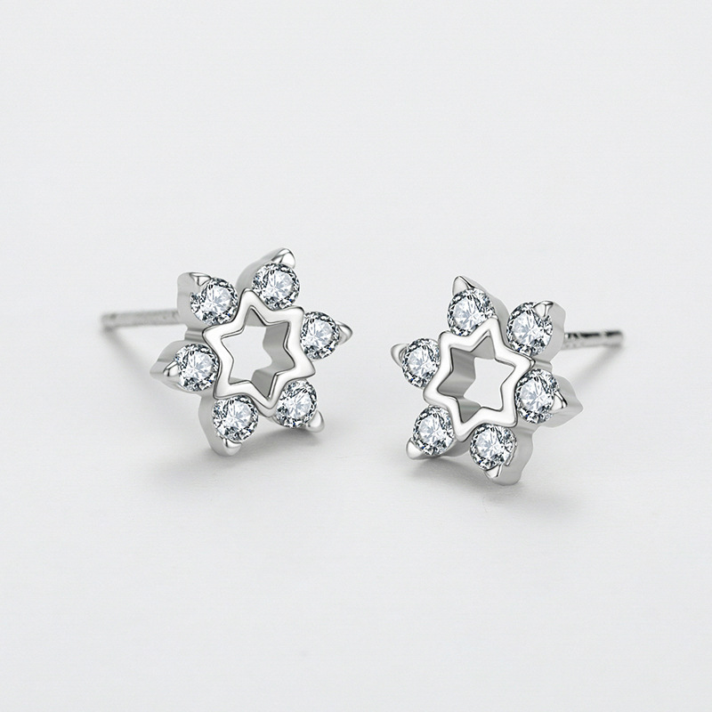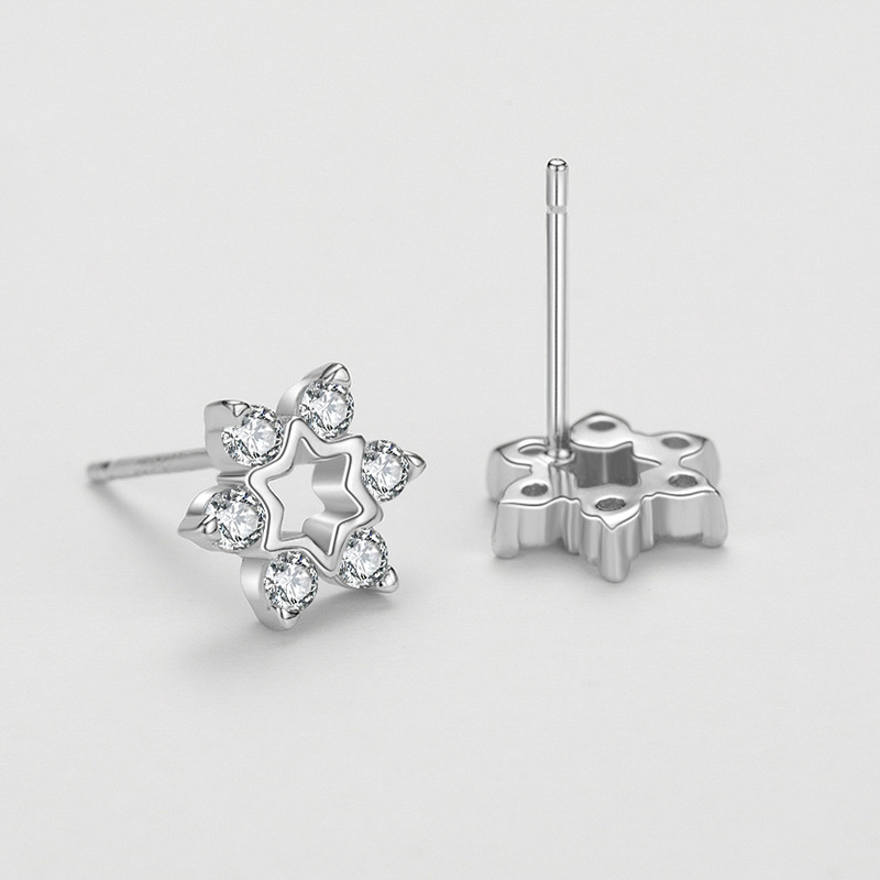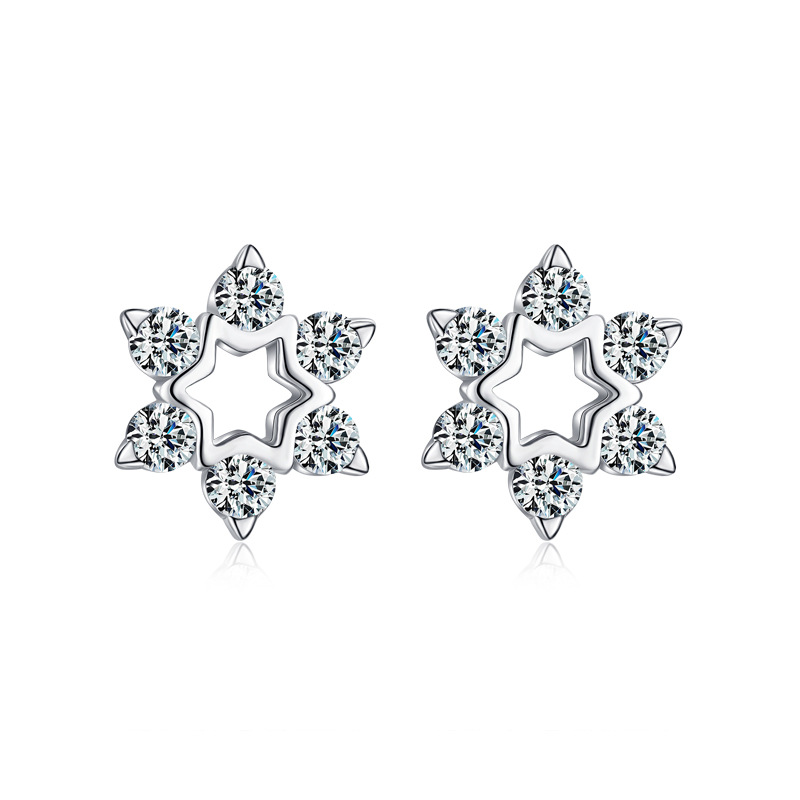 925 Sterling Silver Zirconia Flowers Stud Earrings 40200174