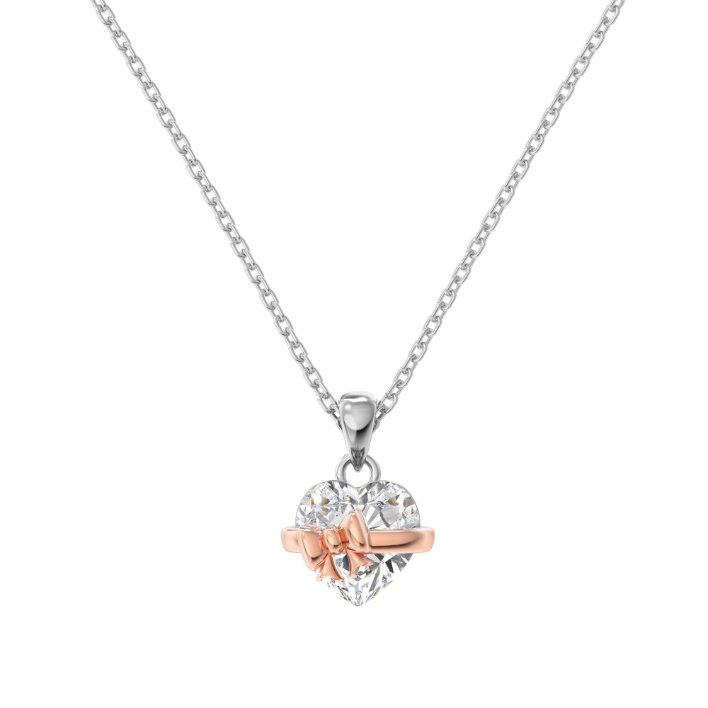 925 Sterling Silver Zirconia Heart Bow Necklace 80200318