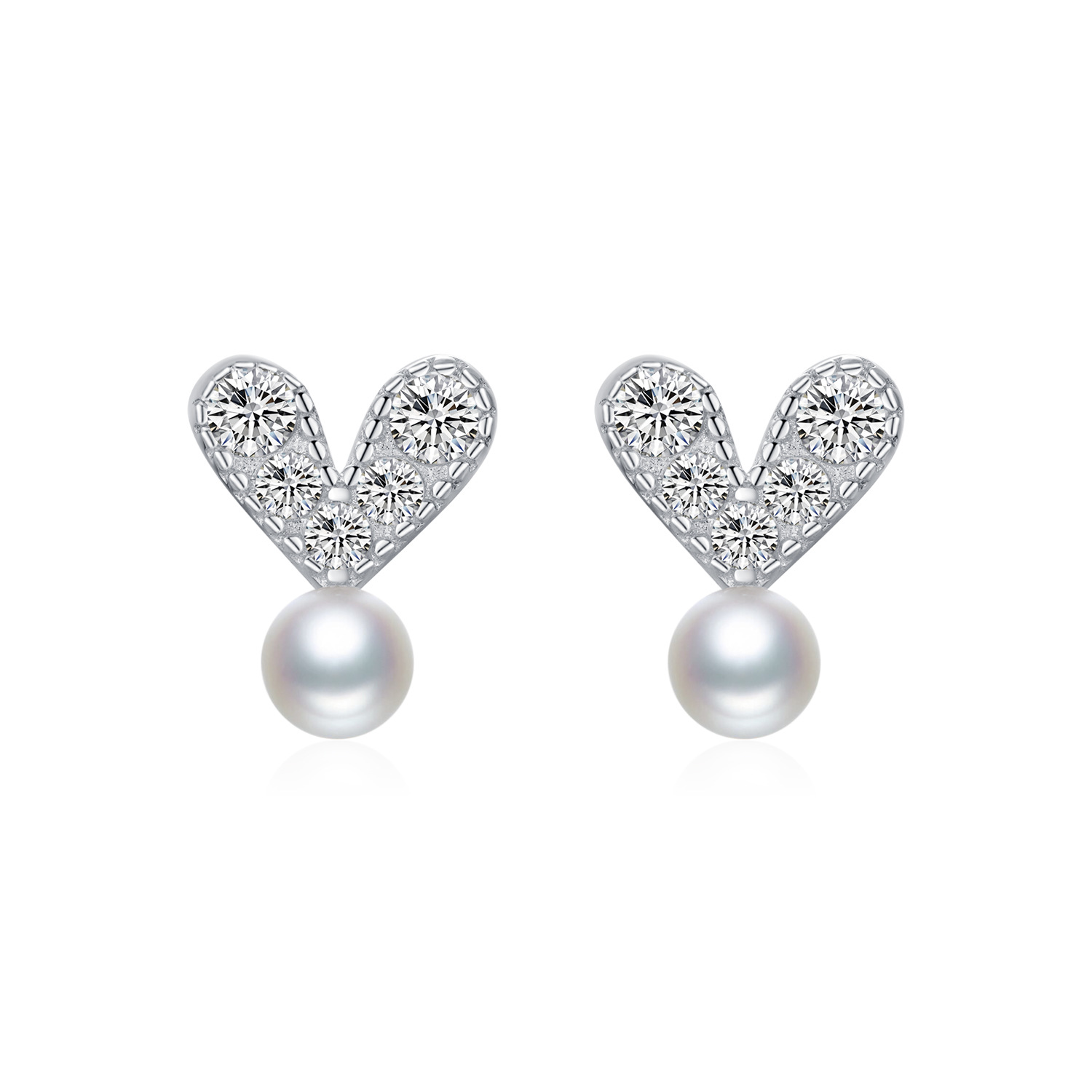 925 Sterling Silver Zirconia Heart Pearl Stud Earring 40200540