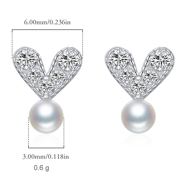 925 Sterling Silver Zirconia Heart Pearl Stud Earring 40200540$ 5.14 |