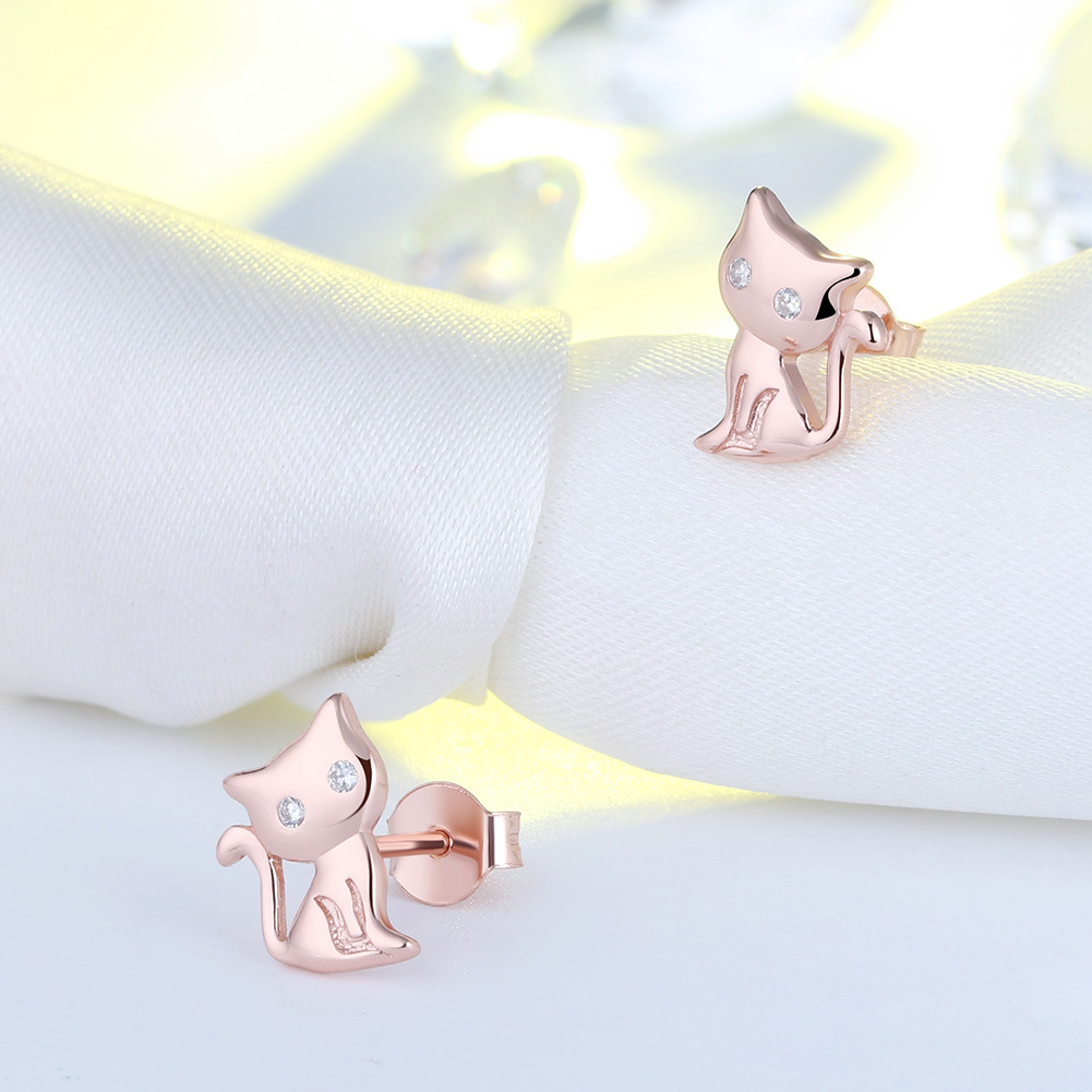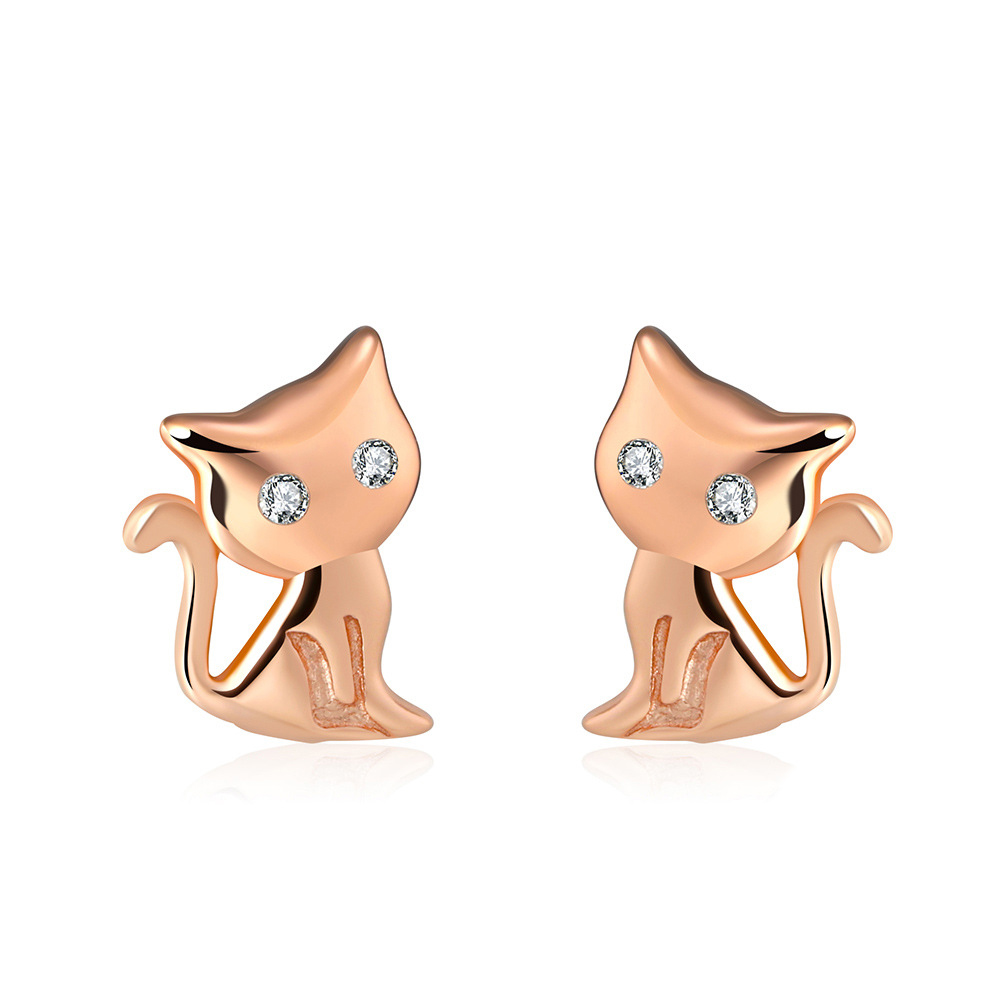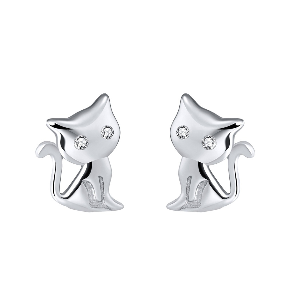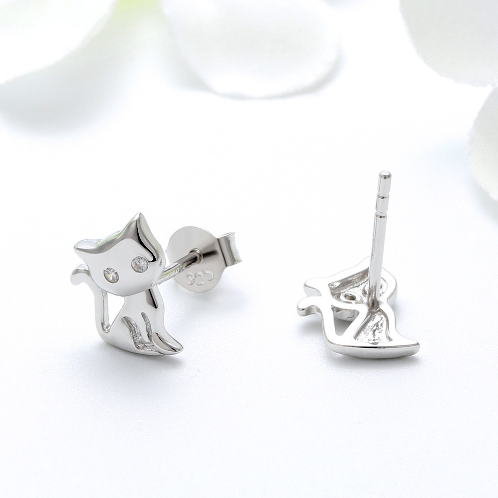 925 Sterling Silver Zirconia Kitten Stud Earring 40200524