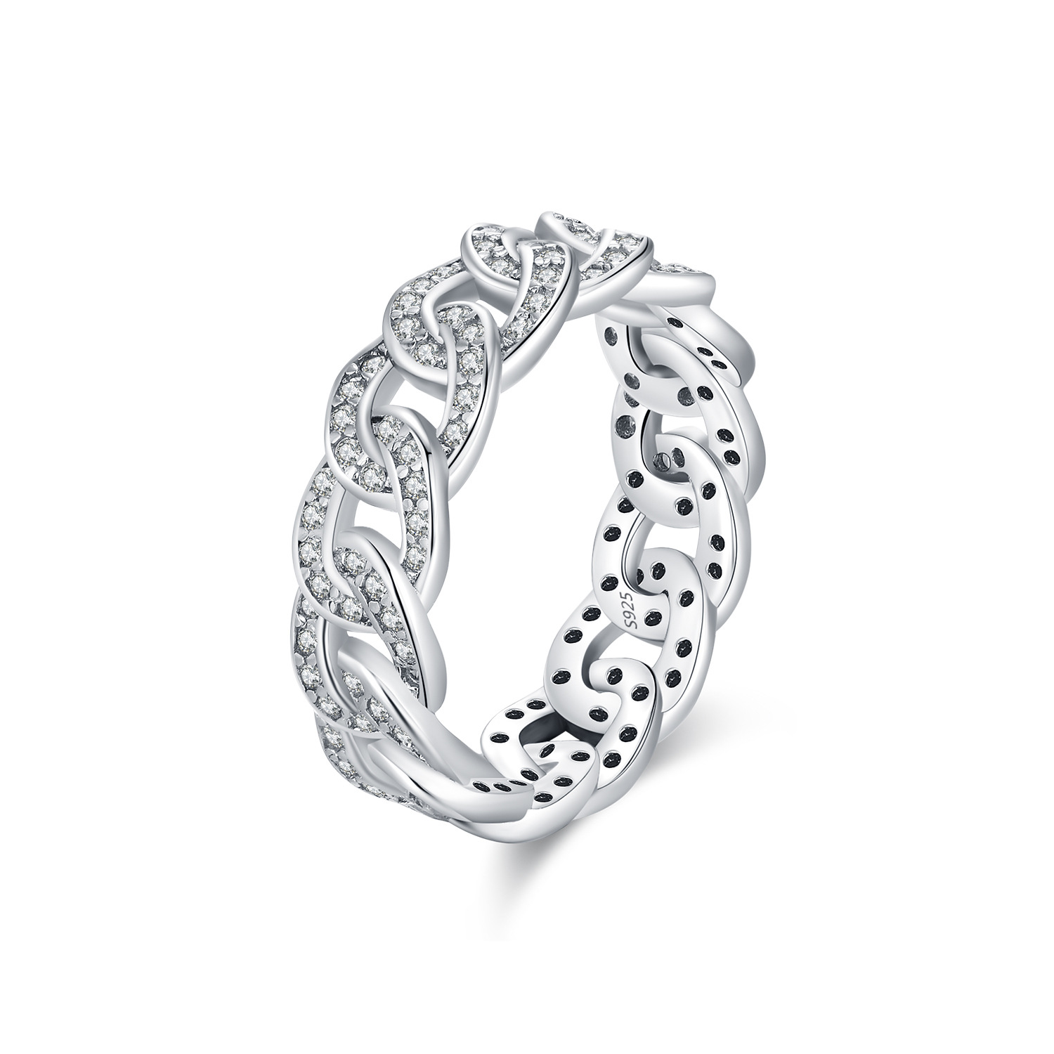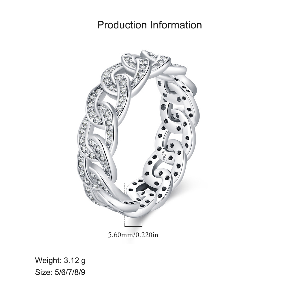 925 Sterling Silver Zirconia Linked Chain Band Ring 70100410