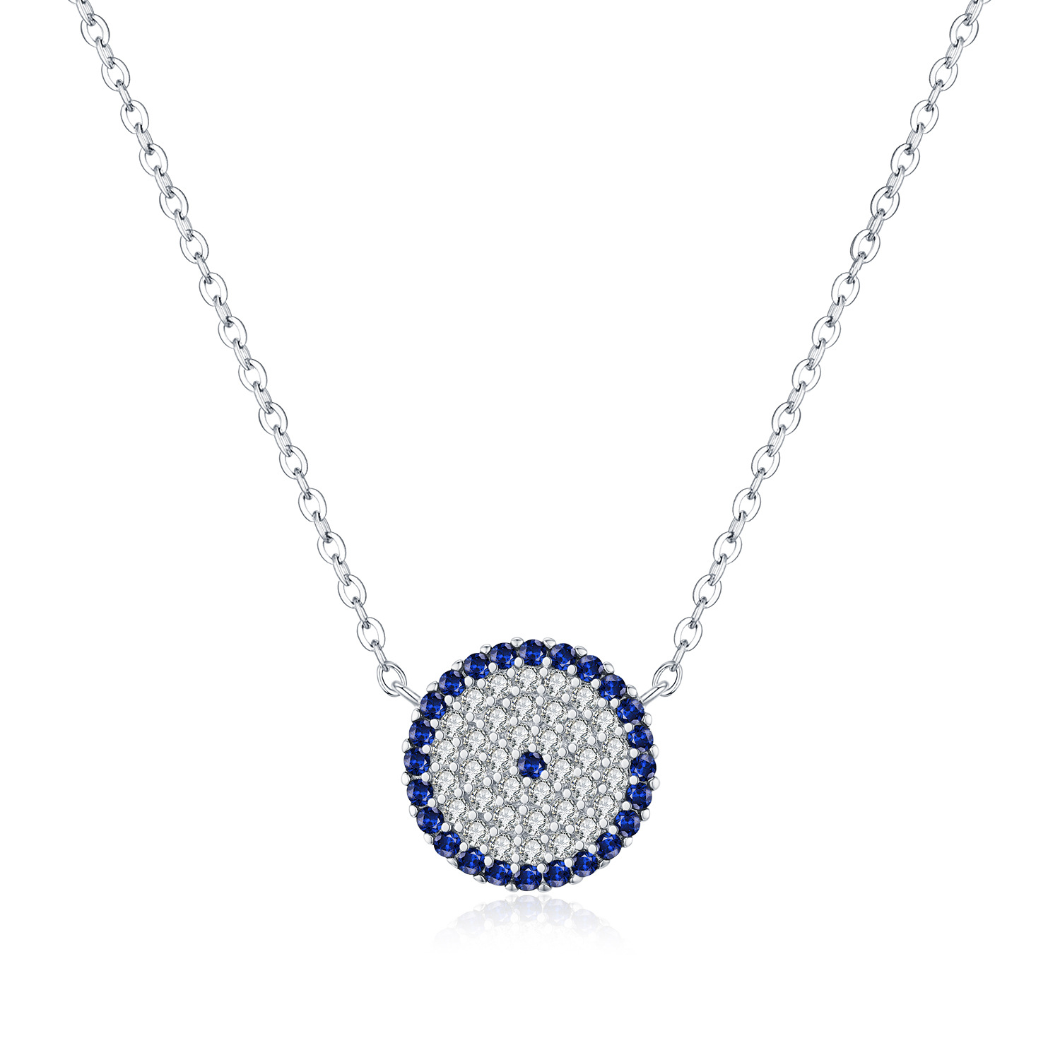 925 Sterling Silver Zirconia Round Pendant Neckalce 80200400