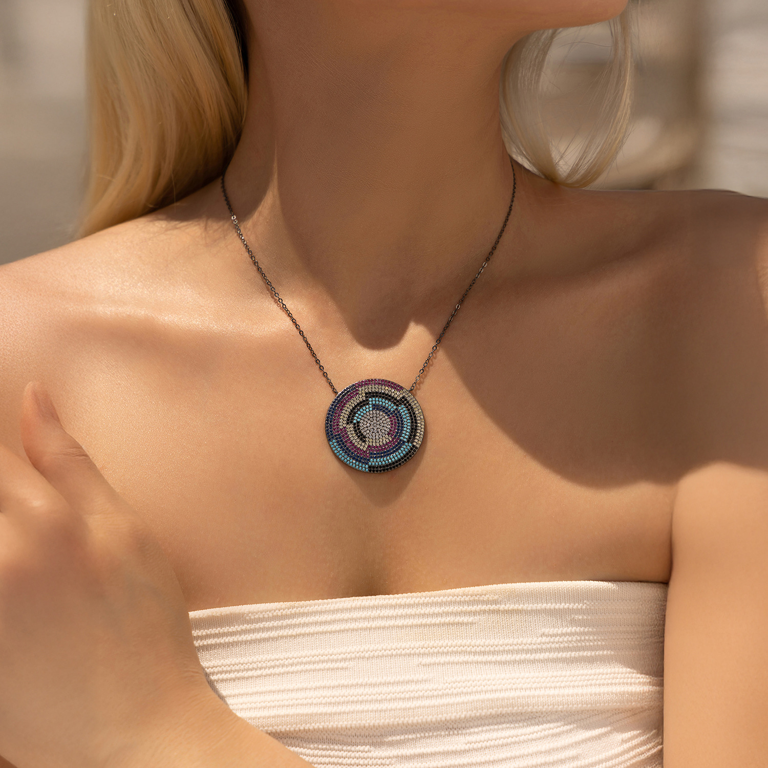 925 Sterling Silver Zirconia Shield Statement Statement Necklace 80200382$ 65.08 |