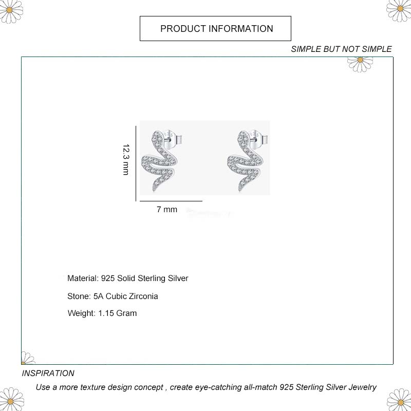 925 Sterling Silver Zirconia Snake Stud Earring 40200101
