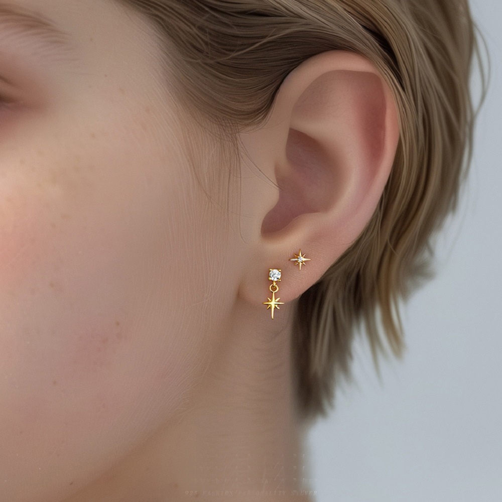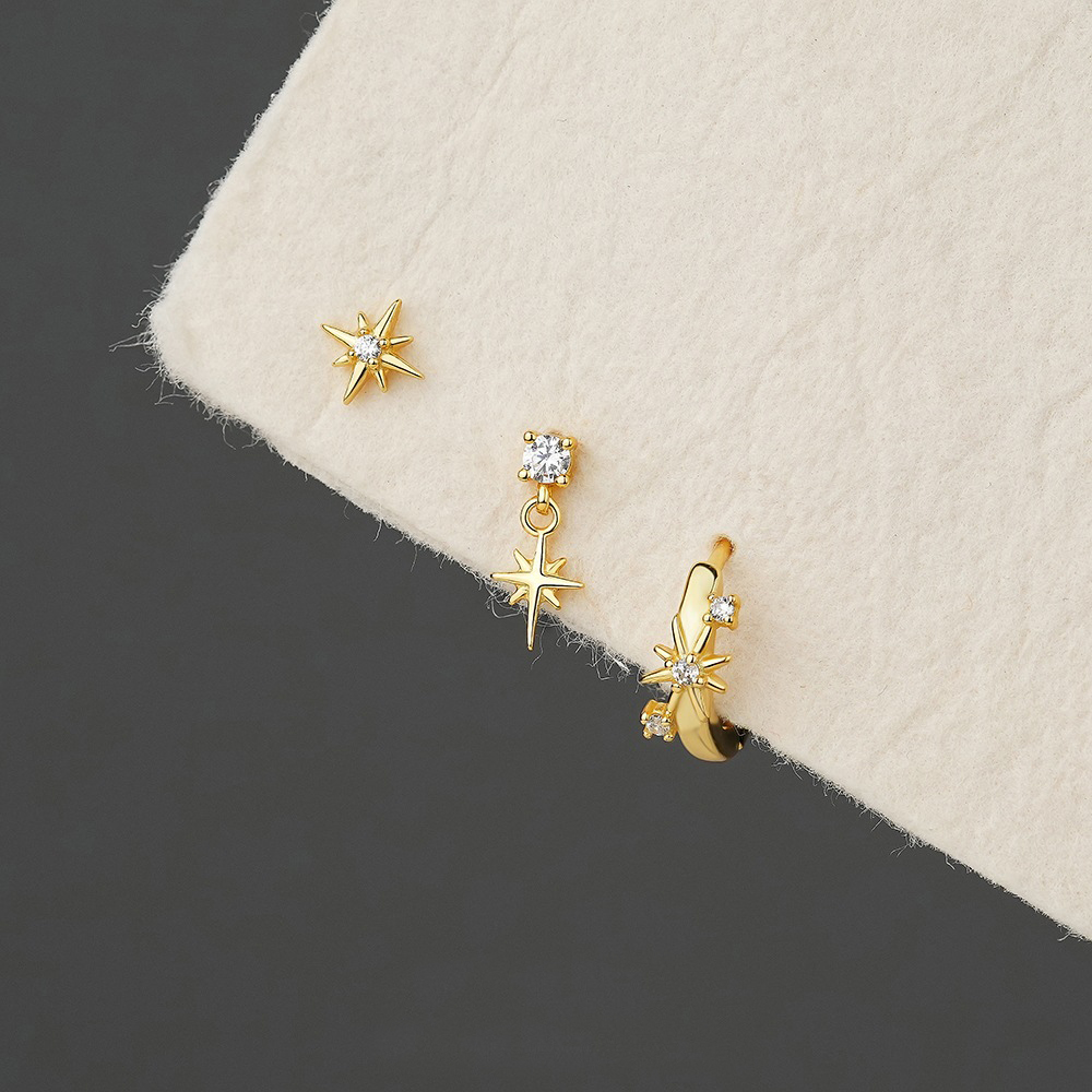 925 Sterling Silver Zirconia Star Earring Set 140100016