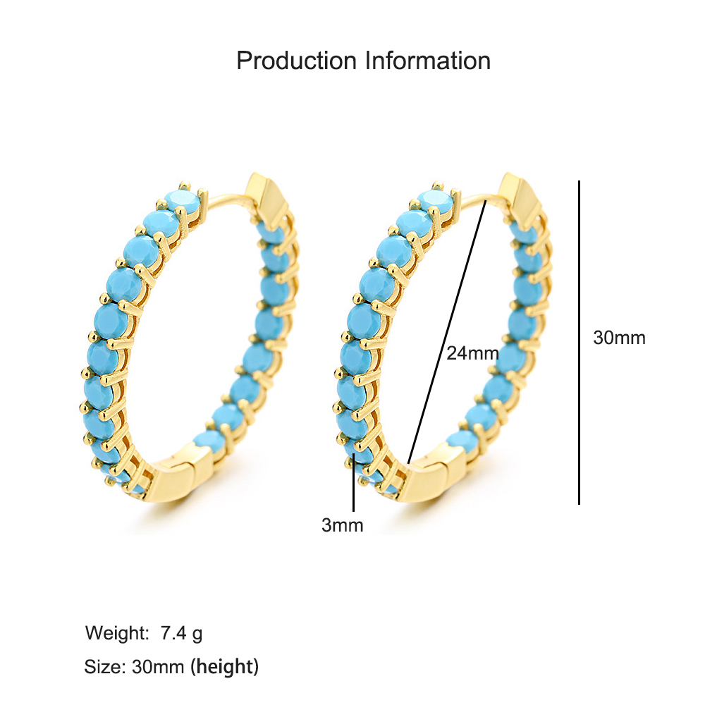 Source a top-selling, trendy design with our 925 Sterling Silver Pave Hoop Earrings. These medium-sized hoops are a staple item, featuring a full circle of secure, prong-set stones (either sparkling cubic zirconia or vibrant synthetic turquoise). Crafted from authentic 925 sterling silver with a durable gold-plated finish, this design offers excellent quality and broad market appeal. The secure hinged clasp is ideal for mass-market retail. Available for bulk purchase at competitive wholesale prices.