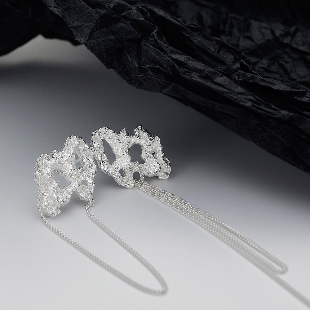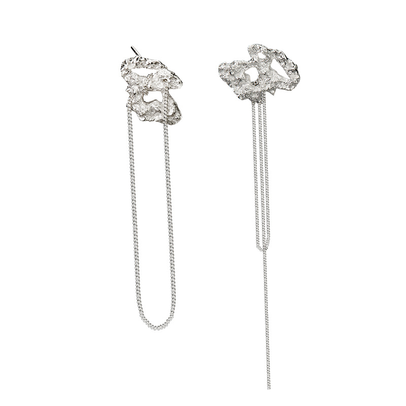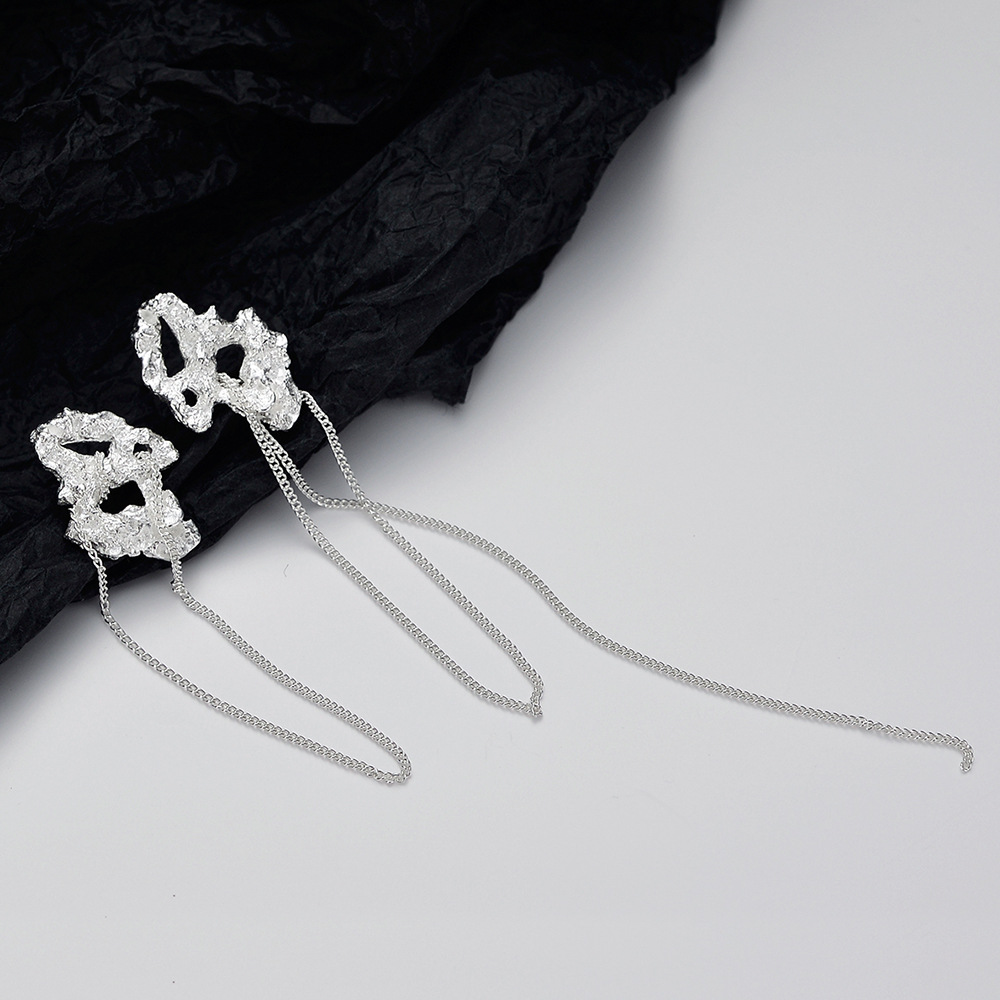 Product: Wholesale 925 Sterling Silver Asymmetry Rough Tinfoil Tassel Stud Earring 40400024.