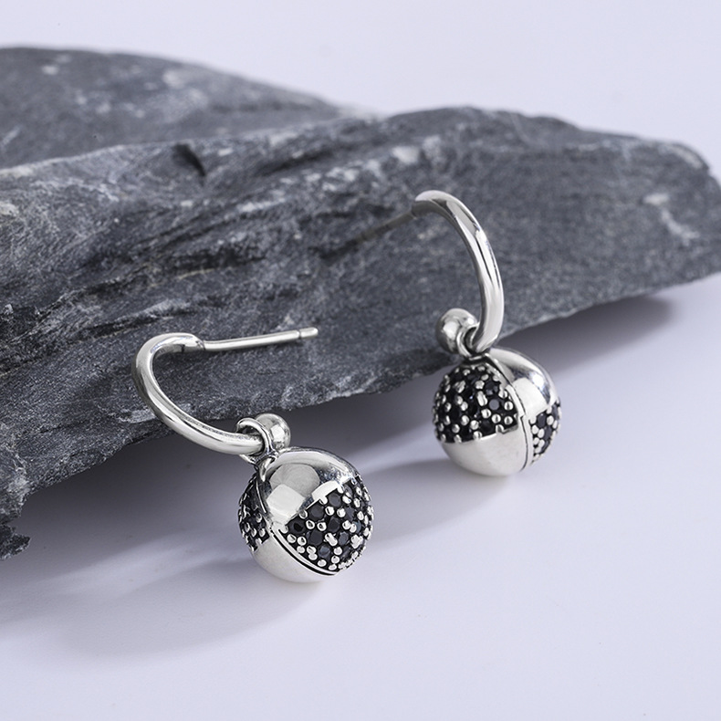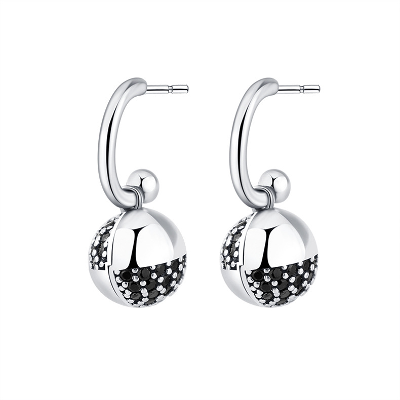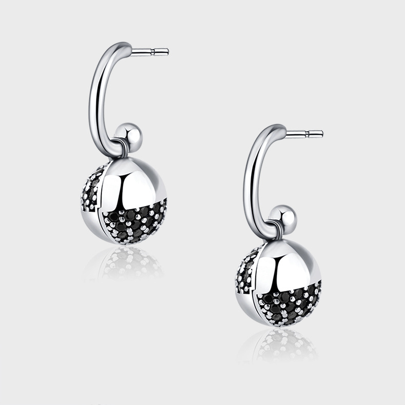 Product: Wholesale 925 Sterling Silver Black Zirconia Balls Dangle Earrings 50100016.
