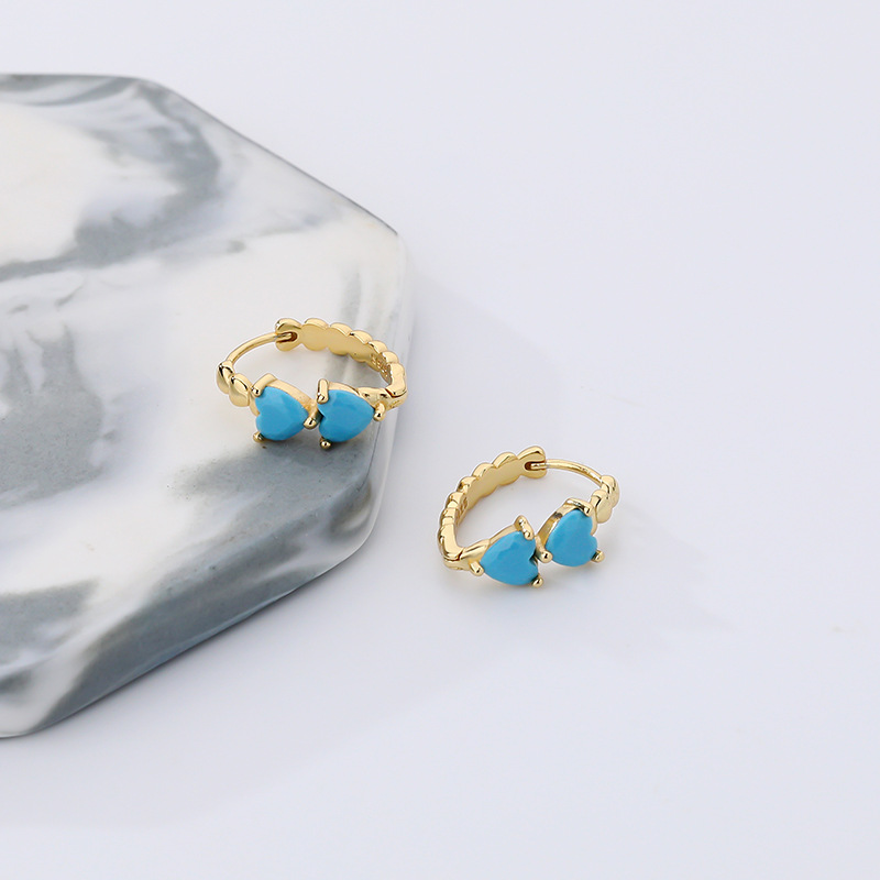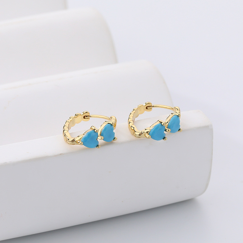 Product: Wholesale 925 Sterling Silver Blue Love Heart Turquoise Hoop Earrings 60200166.