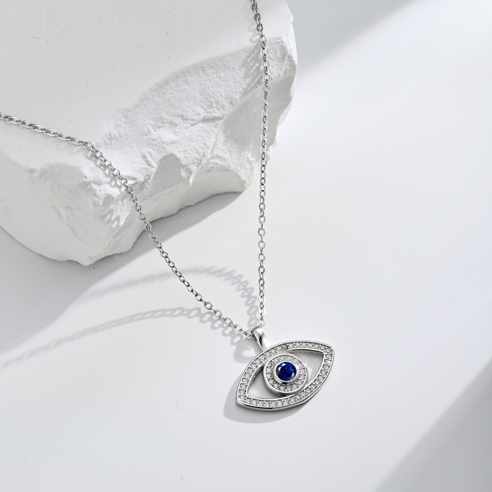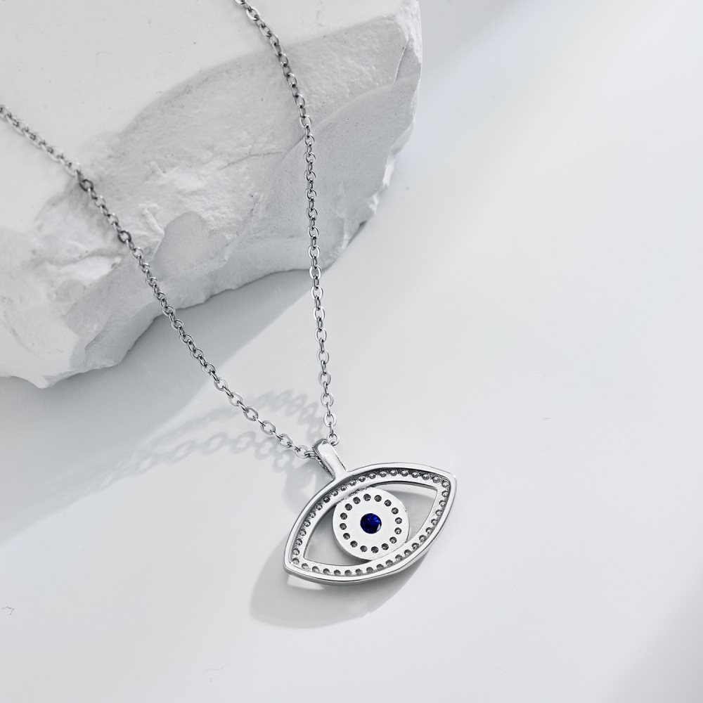 Product: Wholesale 925 Sterling Silver Blue Zirconia Evil Eye Pendant Necklace 80200275.