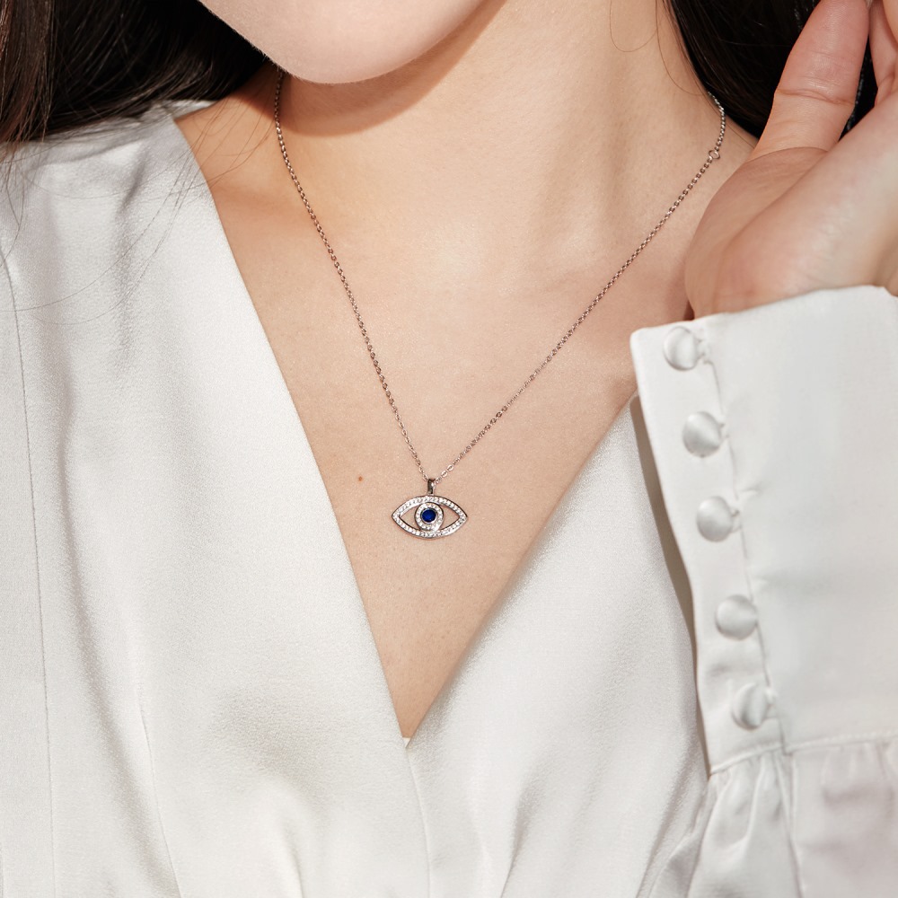 Blue Zirconia Evil Eye Pendant Necklace 80200275 - image1Blue Zirconia Evil Eye Pendant Necklace 80200275 - image2
