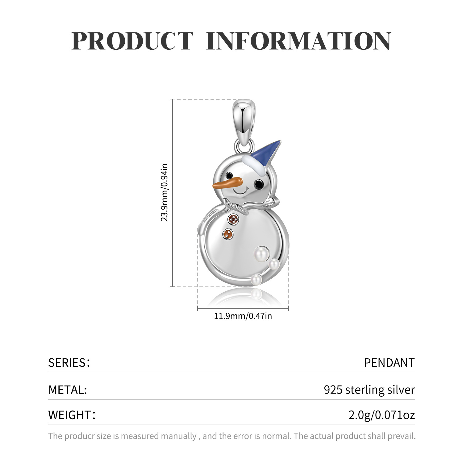 Product: Wholesale 925 Sterling Silver Christmas Snowman Charms Pendants 90200047.