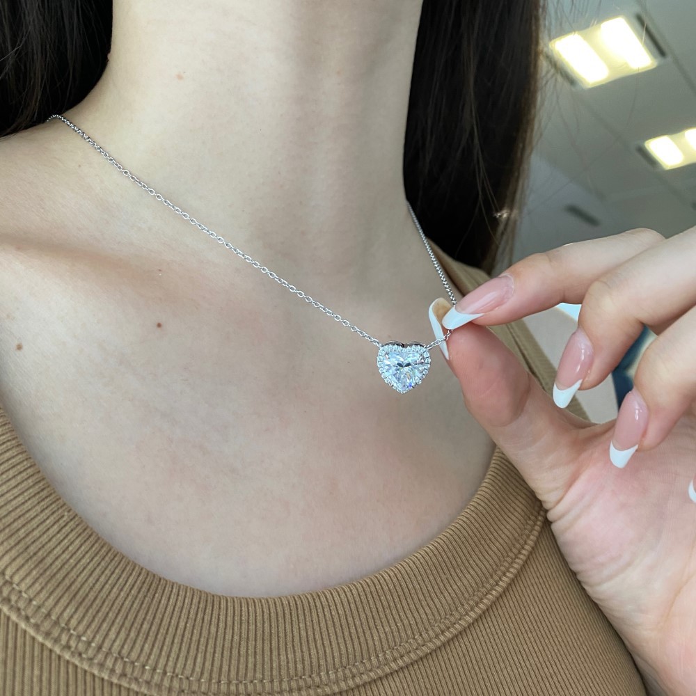 Product: Wholesale 925 Sterling Silver Classical Zirconia Heart Pendant Necklace 80200249.