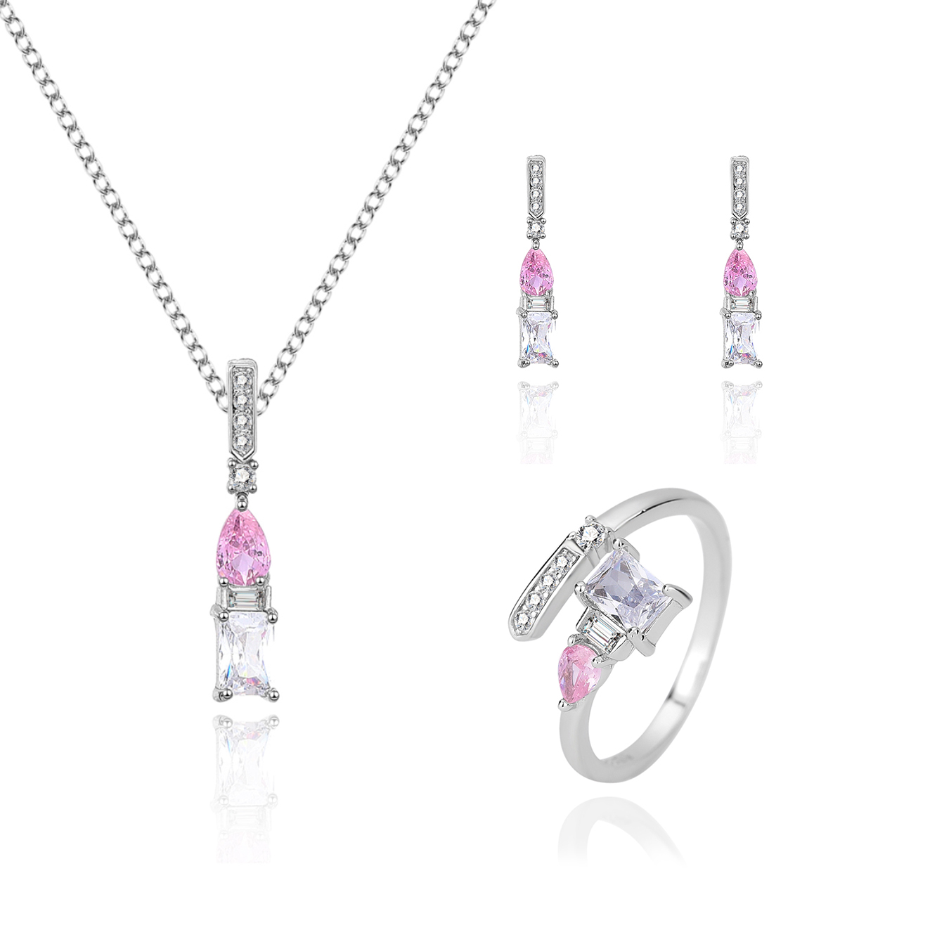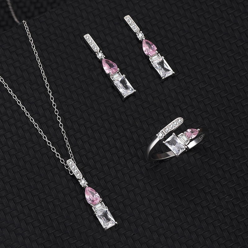Product: Wholesale 925 Solid Sterling Silver Cubic Zirconia Geometric Pendant Necklace Stud Earring Ring Set 140300005.