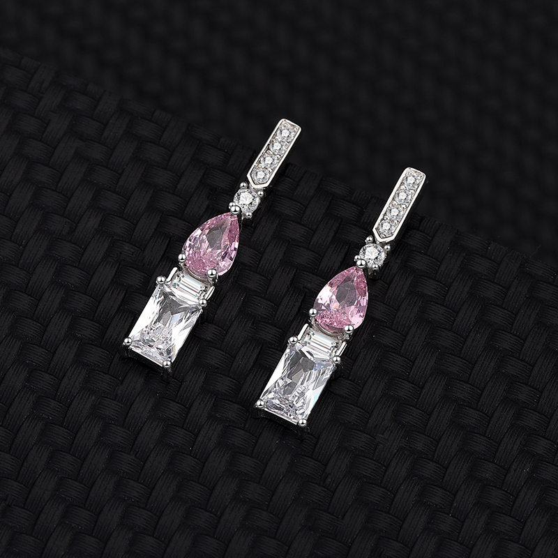 Main Stone: 5A Cubic Zirconia, Necklace Pendant Size: 5*25 mm, Earring Size: 5*25 mm (width*height). Ring: Adjustable.