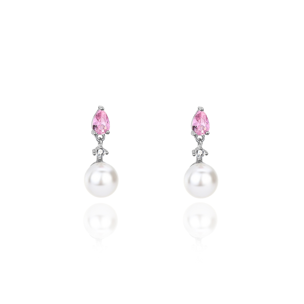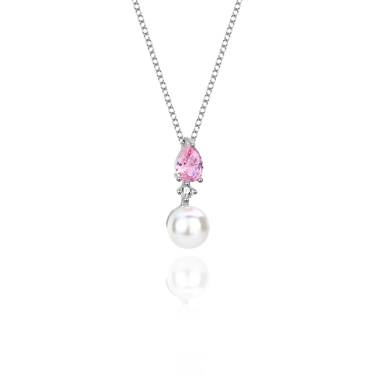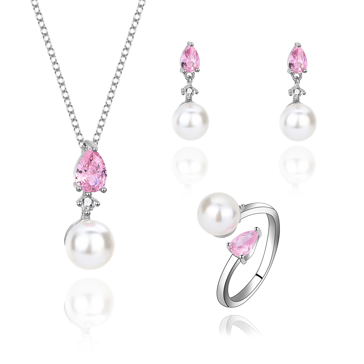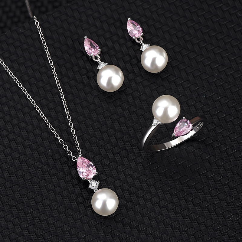 Product: Wholesale 925 Solid Sterling Silver Cubic Zirconia Pearl Pendant Necklace Stud Earring Ring Set 140300007.