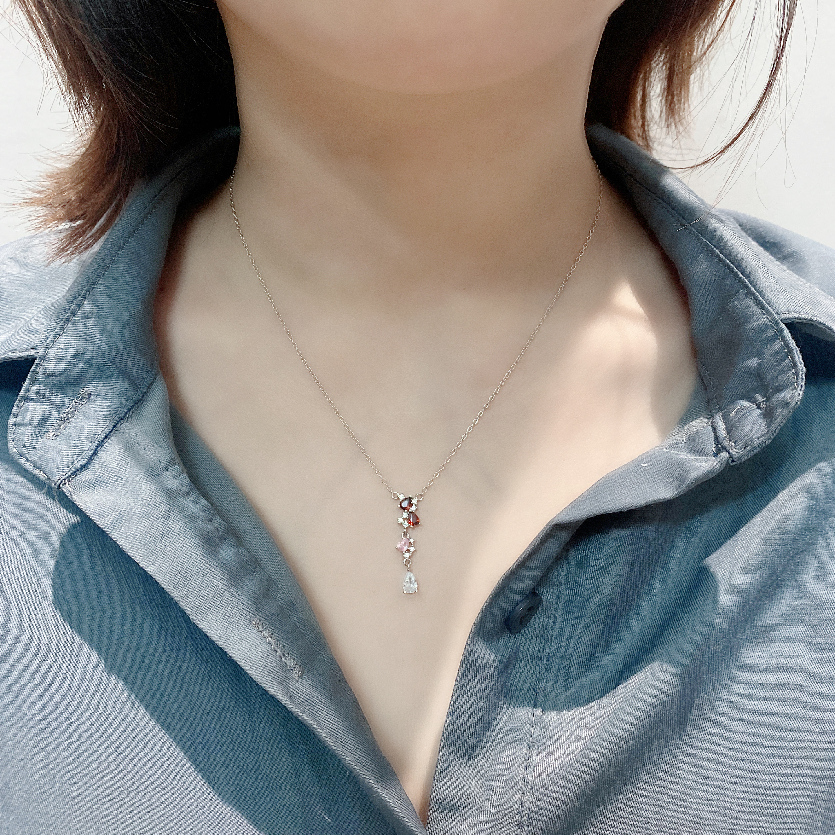 Main Stone: 5A Cubic Zirconia, Necklace Pendant Size: 6.5*28 mm, Earring Size: 6.5*33.5mm (width*height).