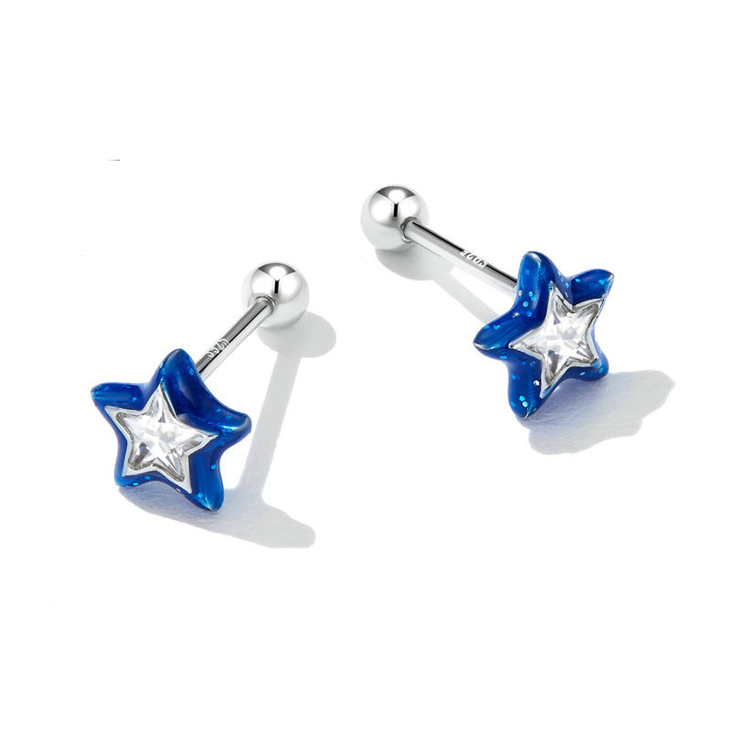 Product: Wholesale 925 Sterling Silver Enamel Blue Star Zirconia Screw Back Earrings 40600005.