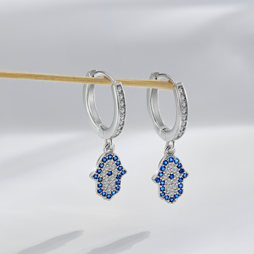 We have a wide collections of wholesale 925 solid sterling silver earrings, such as sterling silver earrings, 925 silver hoop earrings, 925 zirconia earrings, 925 silver zirconia dangle earrings, evil eye hoop earrings, evil eye dangle earrings, 925 silver evil eye hoop earrings, 925 silver evill eye dangle earrings, hassam hand earrings, zirconia hassam hand earrings, etc.
