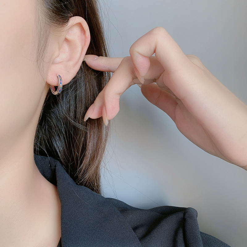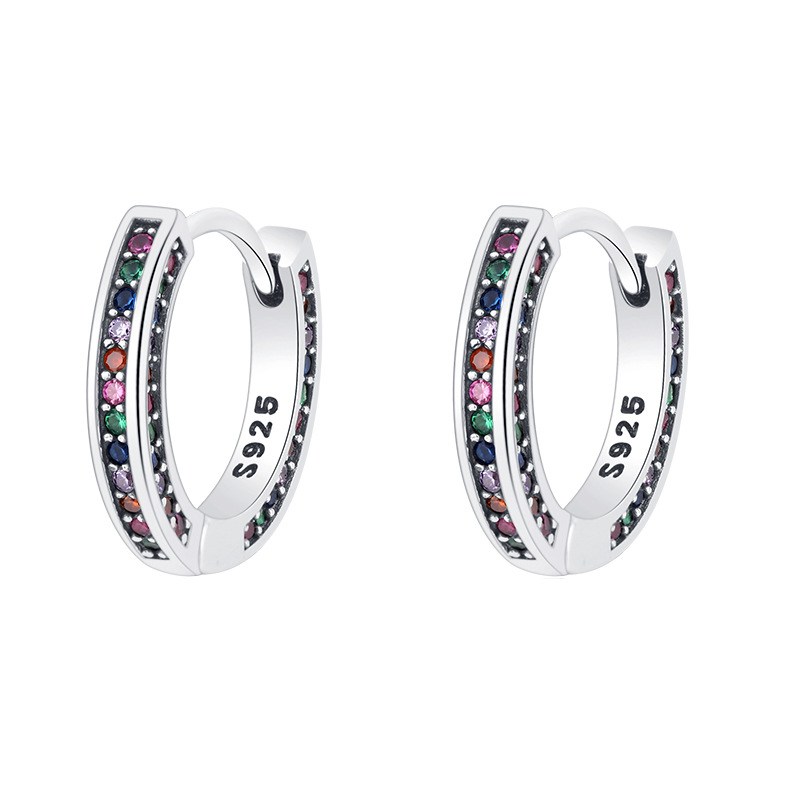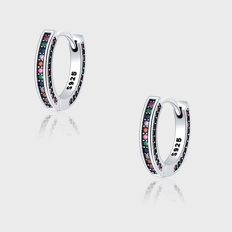 Product: Wholesale 925 Sterling Silver Full Rainbow Zirconia Hoop Earrings 60200068.