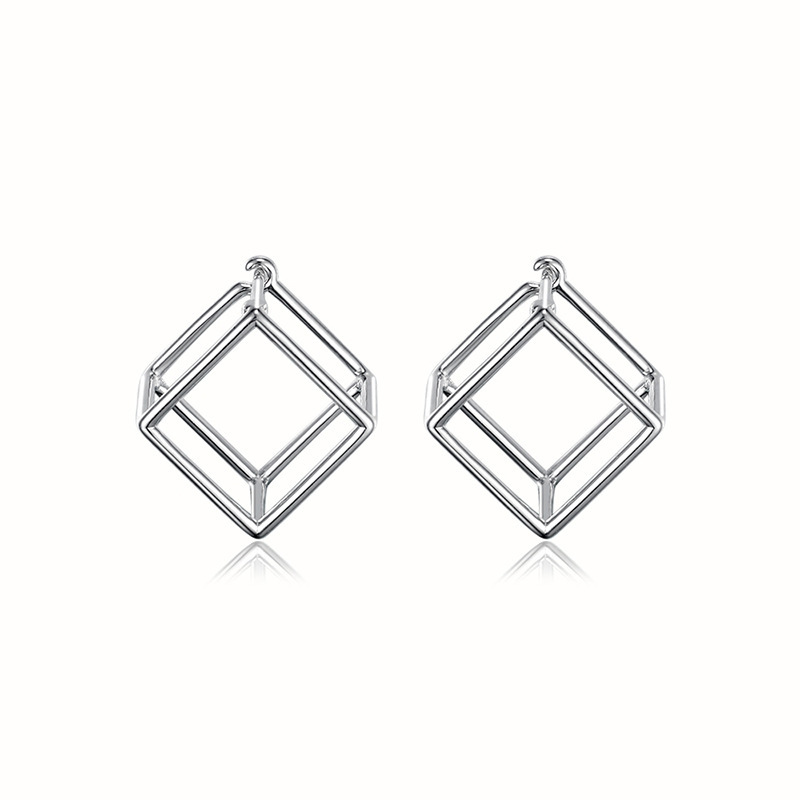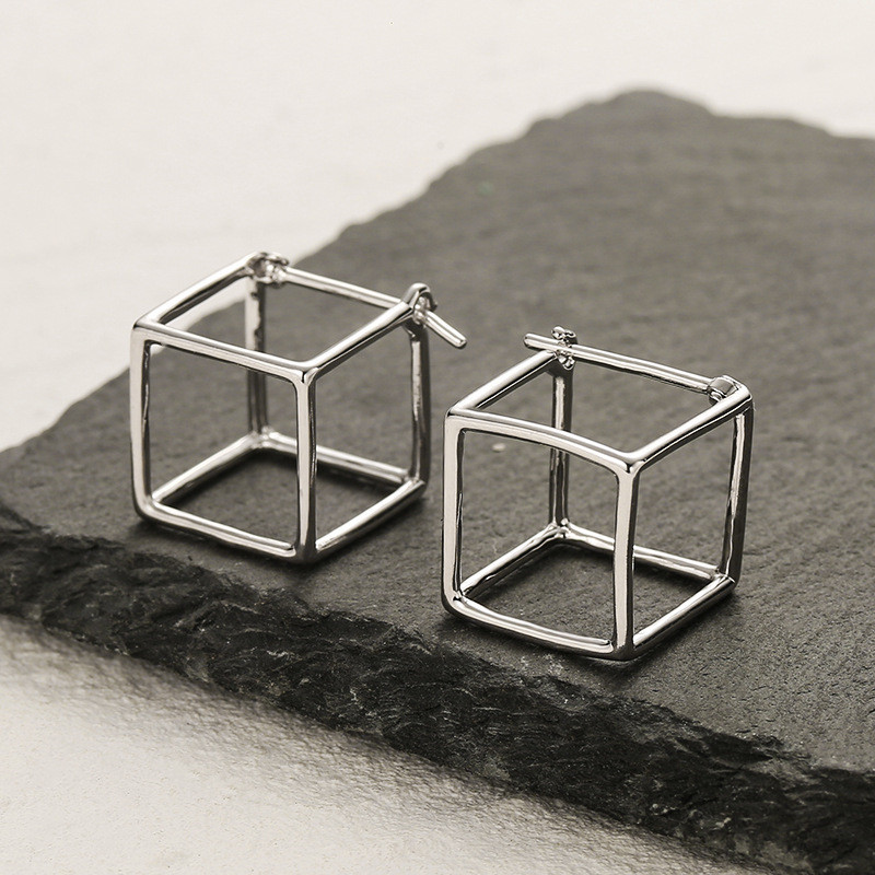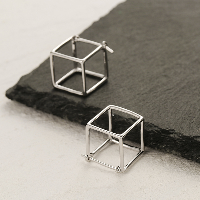 Product: Wholesale 925 Sterling Silver Geometric Hollow Cube Hoop Earring 60200115.