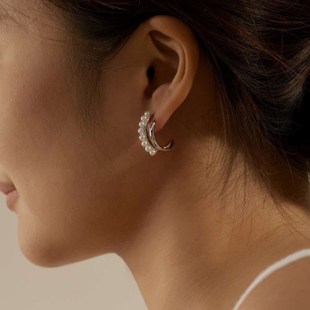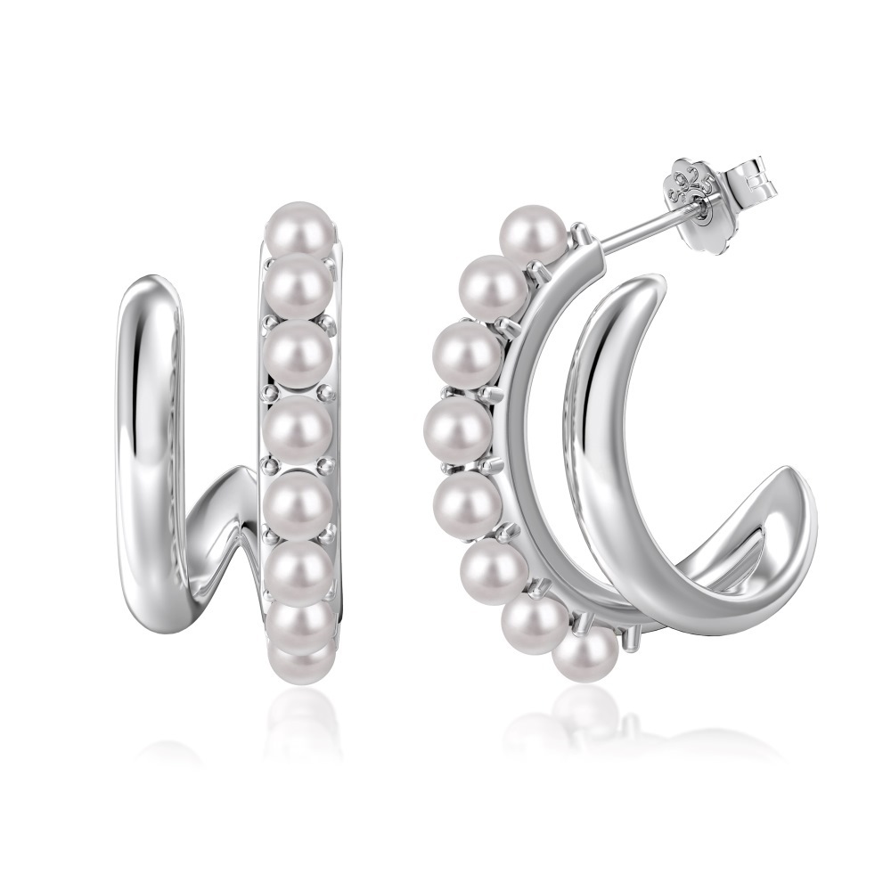 Product: Wholesale 925 Sterling Silver Geometric Pearls Stud Earring 40500012.