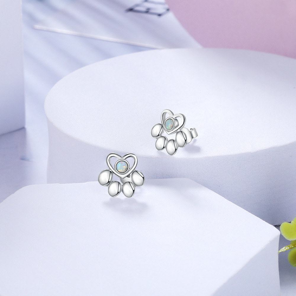 Product: Wholesale 925 Sterling Silver Heart Footprint Opal Stud Earring 40700014.