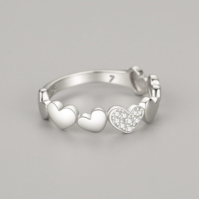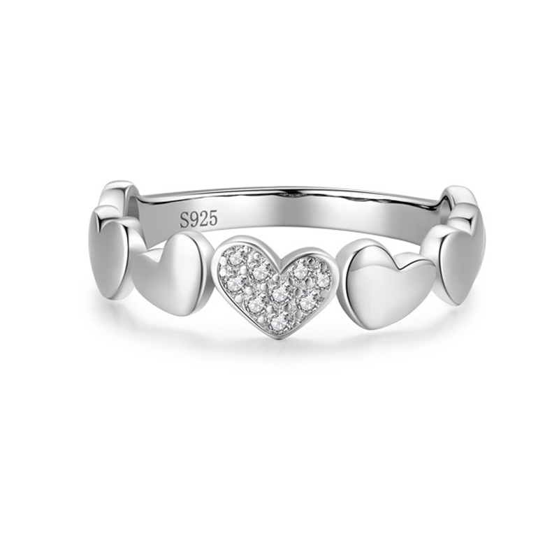 Product: Wholesale 925 Sterling Silver Heart Zirconia Stackable Band Ring 70100144.