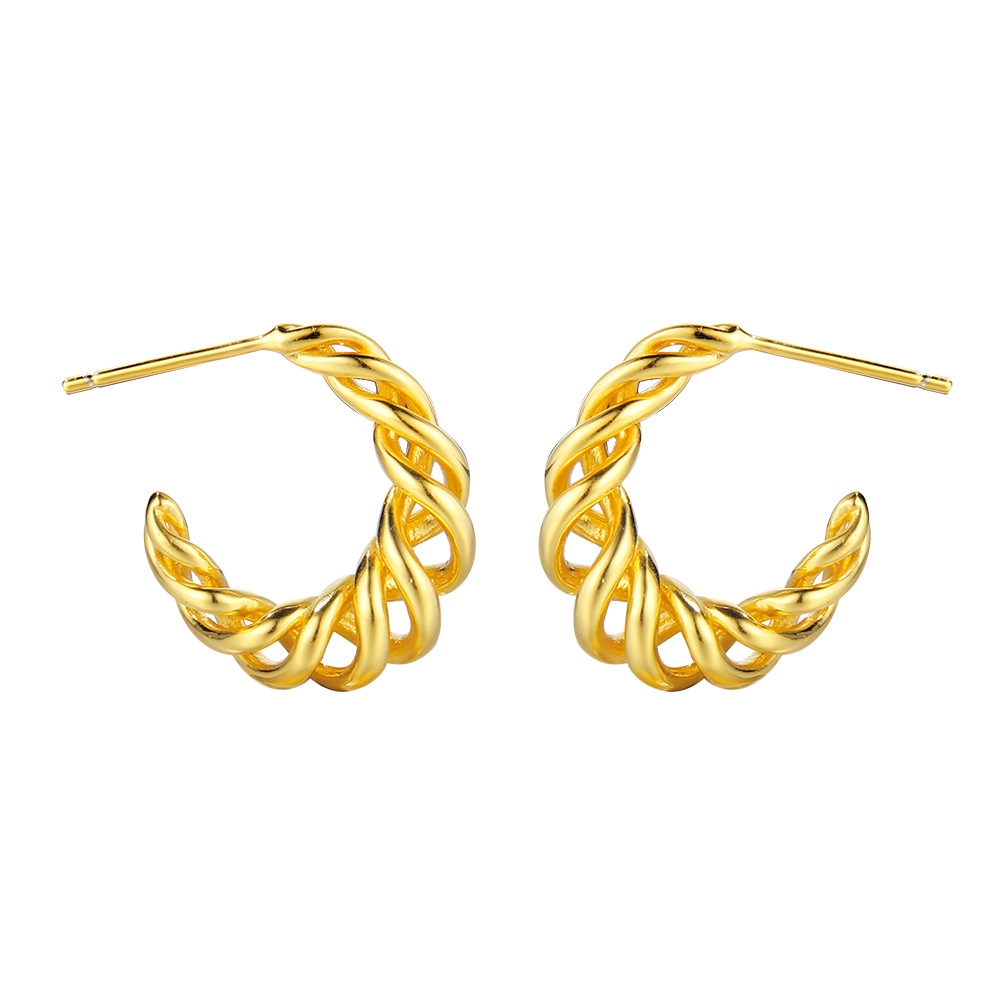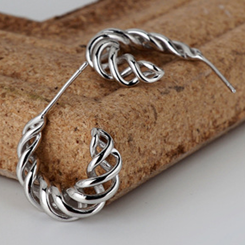 Product: Wholesale 925 Sterling Silver Hollowed Knited Cowhorn Stud Earring 40400022.